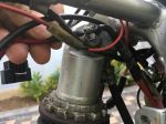 As I was working on the carburetor and testing different needle positions, and had to take off the air filter housing, I decided to reroute the battery cables so I could mount the right hand side cover properly. I made new longer cables that I could route over the top of the battery rather than the outer side. I retained the original cables from the starter and just made new extensions that I screwed on. I properly insulated the positive cable to avoid any risk of short circuits.