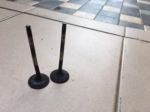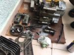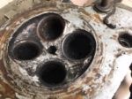 As for flogging the bikes to death, here are some pictures of the engine I got with my spares bike. When I started taking it apart I noticed that two cylinder head bolts were missing, and two cam shaft caps, and two valves as well. Removing the cylinder head revealed there was no piston! I did later find parts of the piston at the bottom of the crank case, together with some other selected parts seen in the picture. All lying in thick layer of oily sludge. A valve had dropped into the cylinder, and that was the end of that bike, which must have been in a bad shape already at that point.