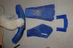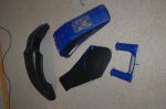 2005 TTR250 Misc. Plastics, mostly OEM. Some idiot spray painted the some of the plastics (comes off easy with Goof Off, etc.), and cut the back end off of the front fender. Also, front fender has a crack between 2 bolt holes. Hardware included. $50.00 + shipping