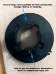 The path for gas evaporation has enclosed a metal bead and a copper washer cap. Also i found that the gasket, between the handcap & ventilation parts, was a dirty and rigid (probably by the long-term exposure in warm climate here..) so i soaked this in wd40 to come back its elasticity.