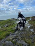 Georgina, Colin, Ian, Andy and me. 2 Yamaha Serow 225s, 2 Honda CRF300Rallys (rare birds in these isles!) and my 325 Open Enduro (disguised as a Raid!)