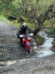 I came next. Slightly off Andy's line the bike died with water up over my knees. Colin rode past me on his CRF, just showing the benefits of a tall bike, and soaking me further with bow wave. I pushed my bike out and Ian attacked with Serow number 1.