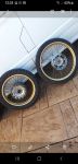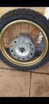DID Gold Rims.Both with brake disc attached.Rear 48T sprocket.Both have what look like new bearings/seals.Tyes have some tread not much.Rear has inner tube but front one removed.Comes with wheel spacers. Couple minor scratches but in good condition really.Bike came with 2 sets of wheels( these were on but I put Purple ones back on) so these not really needed. Local pick up preferred (Rotherham,South Yorkshire) or buyer can arrange own courier at own expense.£210.