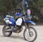 B&B bashplate, $6 kitchen tidy fairing, own design rear tray - properly manufactured, some cheap tube to keep the bags out of the rear wheel, custom seat, 'bar risers, cheap tube to mount the Zumo, XR250 Safari tank, those mirrors that mount via RAM ball mounts. I tried a Staintune muffler but took it off.