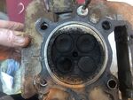 I have attached some pictures of the top of the piston, with 'interesting' marks, presumably made by the valves. Can anyone shed any light on how this might have occurred?